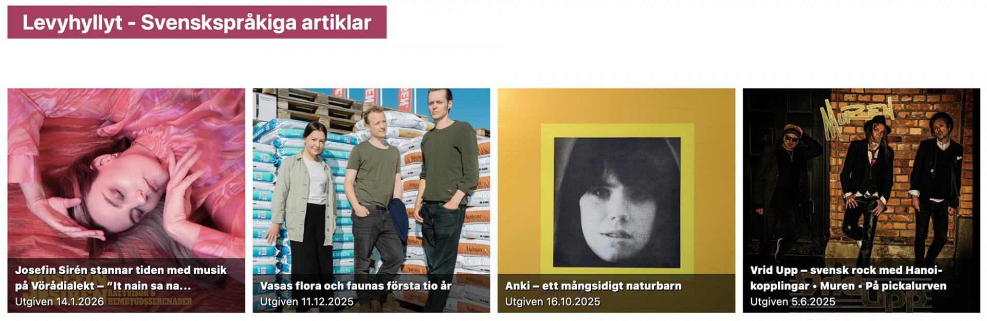 Bild 1: Bildkarusell med de nyaste svenskspråkiga artiklarna i Levyhyllyt.fi
